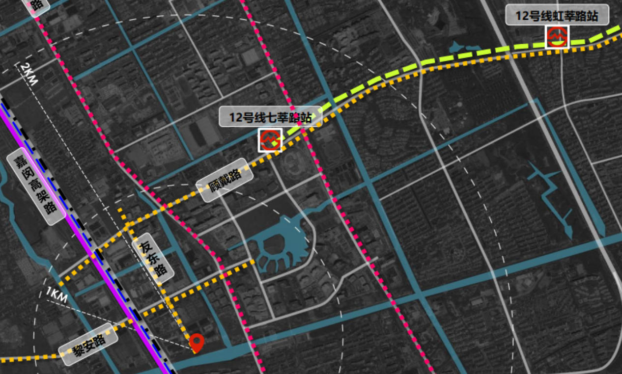 • 軌道交通:地鐵 12 號(hào)線七莘路站(約 1.5 公里,步行 18 分鐘 / 騎行 6 分鐘);地鐵 1 號(hào)線莘莊站(約 4 公里,駕車 12 分鐘);未來(lái)嘉閔線開(kāi)通后,可直達(dá)虹橋樞紐,通勤效率大幅提升。